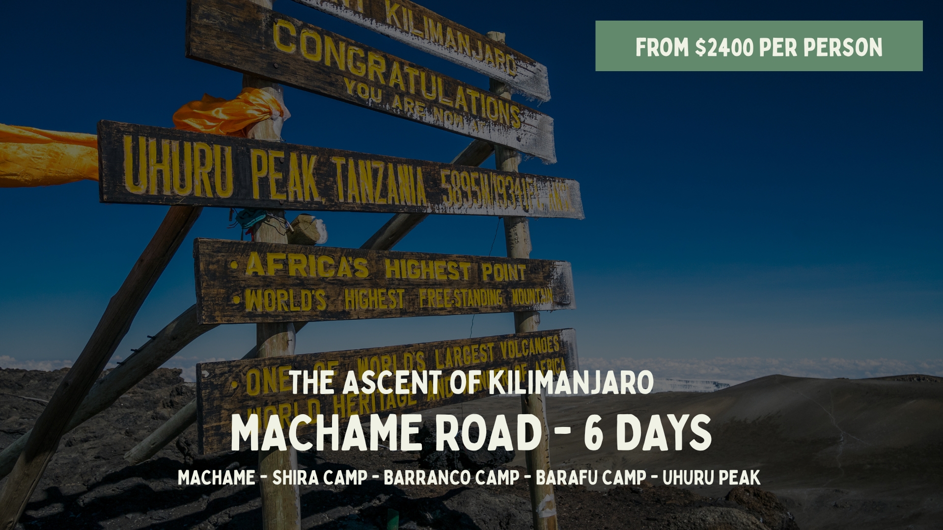 book your safari and tripDiscover our tours in Tanzania, designed for an authentic and personalized experience. Each itinerary can be tailored to your preferences, with the accompaniment of local French-speaking guides, for a responsible and unforgettable safari. OUR SAFARI and trip SELECTION LA ROUTE DES PARCS (from 2900$/pers)5 Days LE PARADIS PERDU (from 2900$/pers)5 Days THE ASCENT OF KILIMANJARO (from $2400/pers)6 Days THE BIG NINE (from 3600$/pers)7 Days HAKUNA MATATA (from 4050$/pers)8 Days LA GRANDE MIGRATION (From 5650$/pers)8 Days OUR SAFARI SELECTION